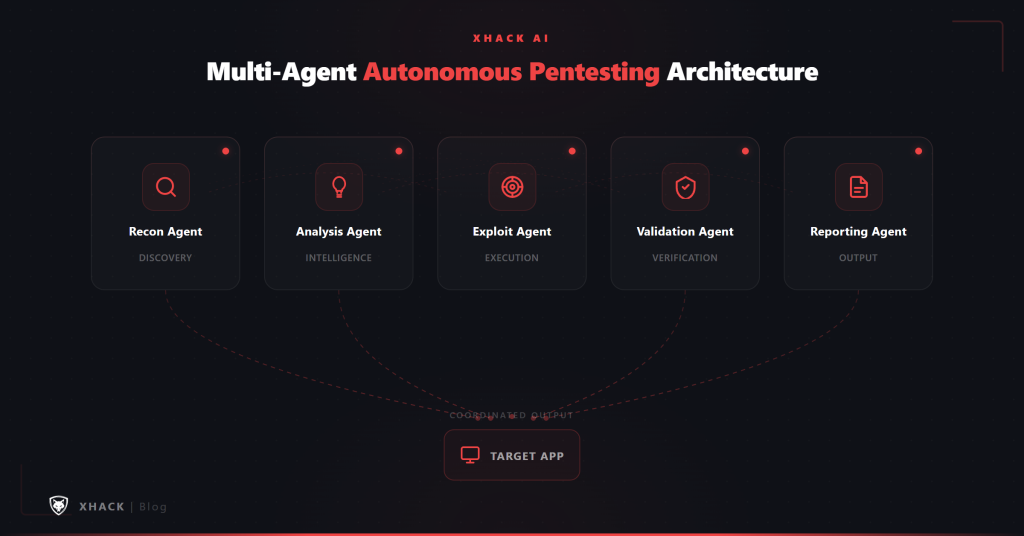 XHack AI doesn’t use one agent trying to do everything. It deploys specialized agents that collaborate: