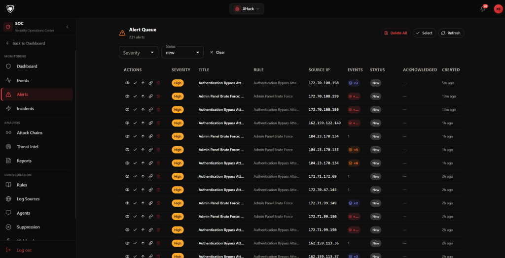 Instead of analysts spending hours correlating logs and events, XHack SOC does the heavy lifting in the background.
