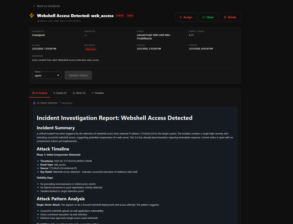 - Remediation provided → AI-generated fix instructions specific to the incident